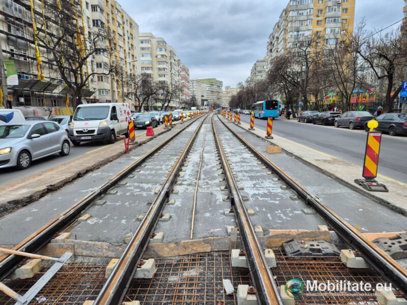 Mobilitate.eu continuă monitorizarea constantă a șantierelor de modernizare a liniilor de tramvai din București, venind săptămânal cu cele mai calde informații de la fața locului. Zilele trecute am revenit pe Bulevardul Chișinău, unde MariVila are tot terenul la dispoziție pentru finalizarea montajului noilor linii, în urma finalizării ultimelor lucrări la rețelele edilitare în apropierea intersecției cu Bulevardul Basarabia. Deja noile linii sunt montate și betonate parțial pe aproape 80% din distanța arterei, până în pauza sărbătorilor pascale fiind șanse mari ca toate liniile să fie montate.