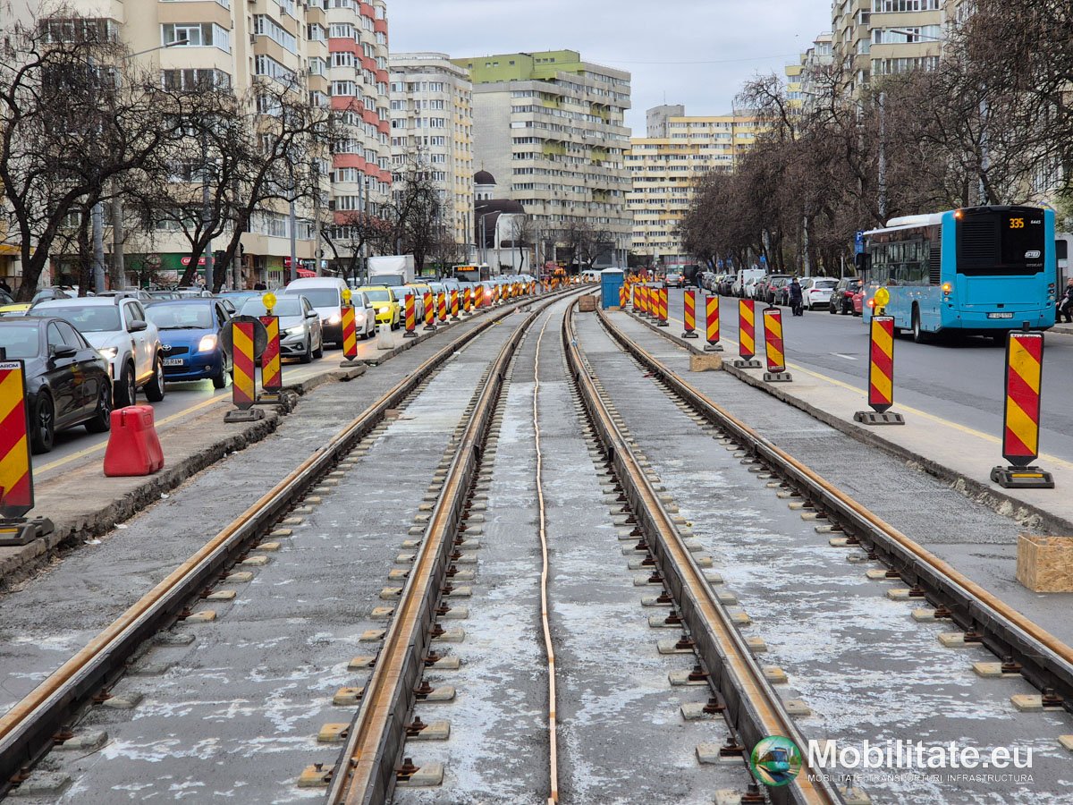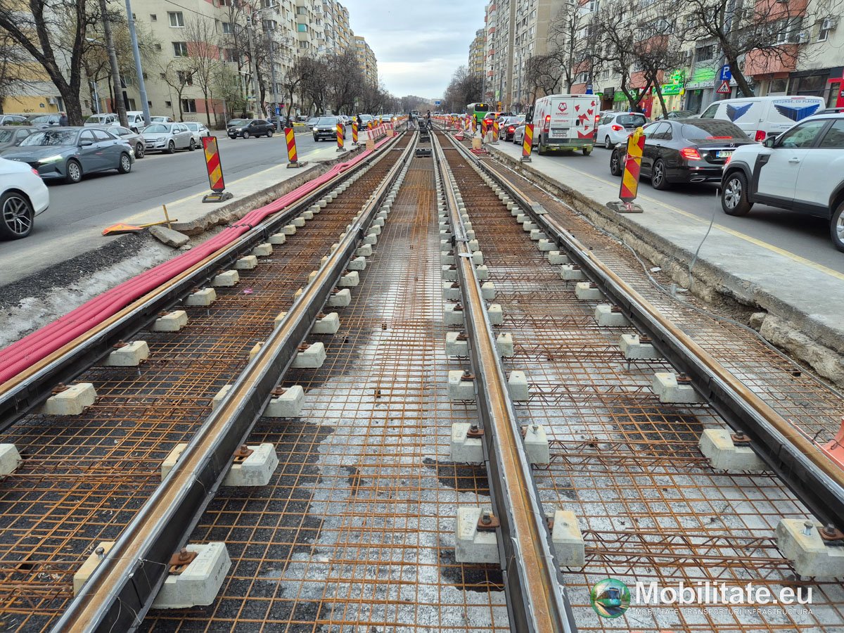 Mobilitate.eu continuă monitorizarea constantă a șantierelor de modernizare a liniilor de tramvai din București, venind săptămânal cu cele mai calde informații de la fața locului. Zilele trecute am revenit pe Bulevardul Chișinău, unde MariVila are tot terenul la dispoziție pentru finalizarea montajului noilor linii, în urma finalizării ultimelor lucrări la rețelele edilitare în apropierea intersecției cu Bulevardul Basarabia. Deja noile linii sunt montate și betonate parțial pe aproape 80% din distanța arterei, până în pauza sărbătorilor pascale fiind șanse mari ca toate liniile să fie montate.