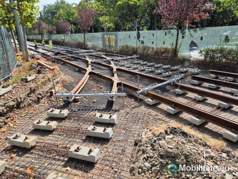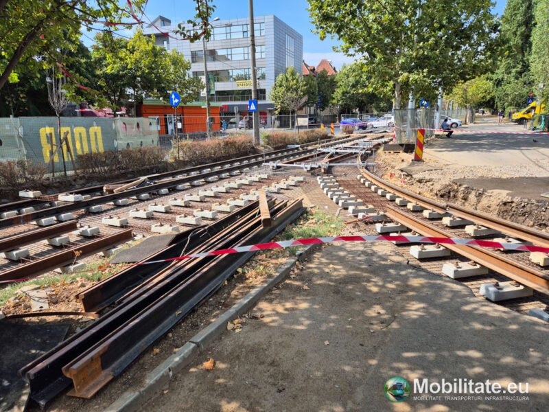 În zona capătului de la Expoziției se lucrează la montarea aparatelor de cale și conectarea liniei cu cea de pe bulevard.